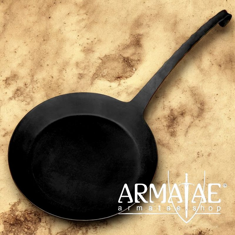 Die Eisenpfanne mit natürlicher Oberfläche eignet sich ideal bei mittelalterlich, neuzeitlichen Lagern, auf Almhütten für das legendäre "Melchermus" oder als stimmungsvolle Requisite oder Dekorationsgegenstand.