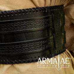 Der schwarze Barbarengürtel von Epic Armoury ist ein beeindruckender Ledergürtel mit wunderschönen Verzierungen und Schnürkanten. Er besteht aus zwei geprägten Ledergürteln, welche durch den breiten Gürtel gezogen sind und so für einen sicheren Sitz und Schutz sorgen.
