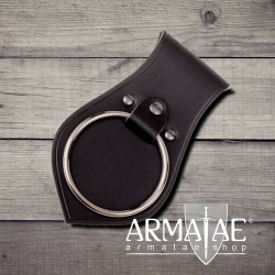 Dieser robuste Waffenhalter aus dickem Leder besitzt einen starken verschweißten Ring aus 4 mm Stahl mit einem Innendurchmesser von 7 cm.