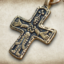 Der Kreuzanhänger wurde nach dem historischen Fund von Sanda auf der schwedischen Insel Gotland gestaltet. Die detailreiche Darstellung von Christus zeigt ihn in einer segnenden Haltung. Solche Kreuzanhänger waren in der späten Wikingerzeit weit verbreitet und dienten sowohl als Glaubenssymbol als auch als Schutzamulett.